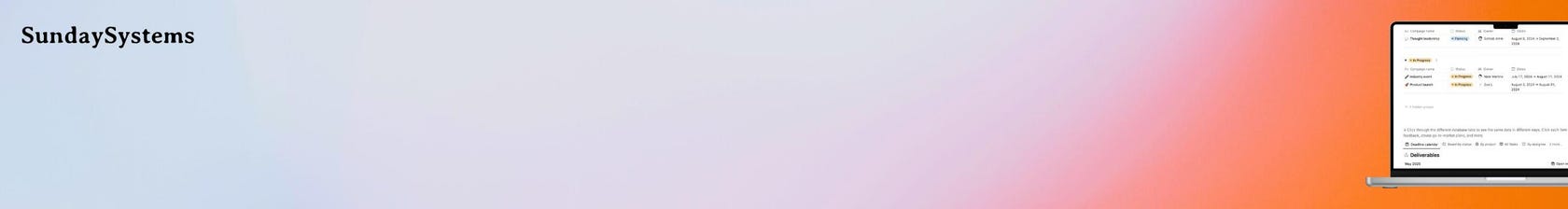 Whether you’re a solopreneur, side hustler, freelancer, or creative founder, Sunday Systems is here to help you run your business with more ease, structure, and intention. Every product is designed to solve real problems and simplify your day-to-day operations—so you can focus on what really matters.