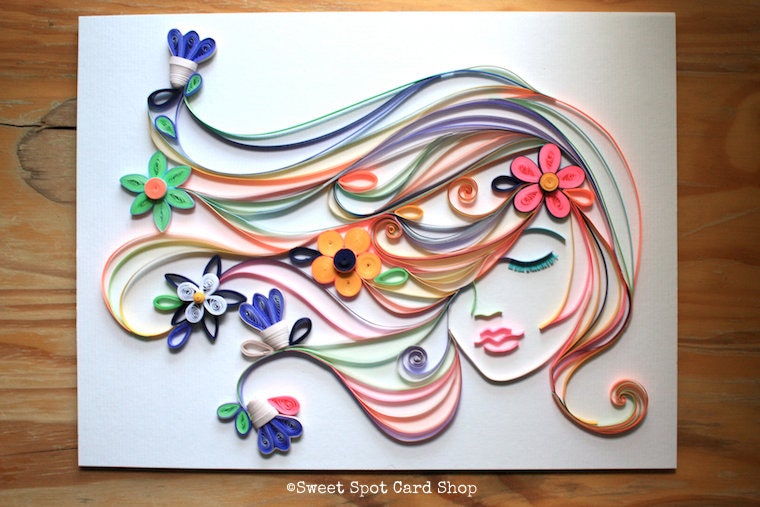 I'm in love with the ancient art of quilling. I twirl thin strips of colorful paper to create unique and fun greeting cards - with a twist. They can be called paper graphics, as they are three dimensional and will surely become a conversation piece with all who receive them.