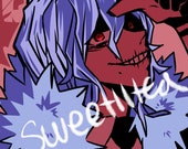 Whatever inspires me! And I think will make a great print. I tend to draw whatever I’m in the mood for, but a big part of it is what I’m currently hyper fixated on! I tend to bounce between fandoms now despite having started out strictly with BNHA prints!