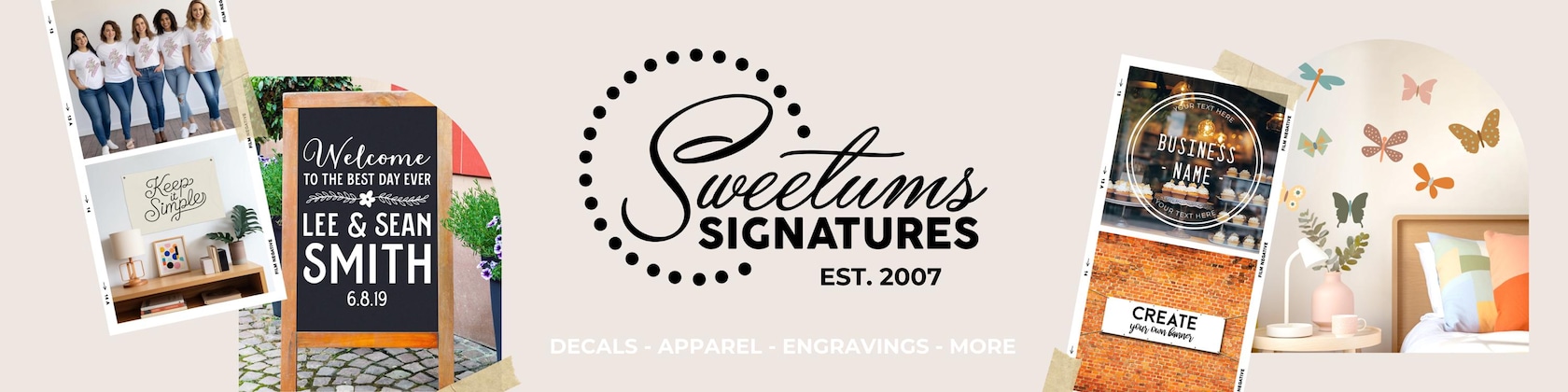 Sweetums Signatures is a small, family-owned, business in Ohio built on core values of hard work and delivering on our promises (while still having a good time). Our goal is to deliver high-quality products to help you personalize your home and your wardrobe at an affordable price. We strive to treat every client like a neighbor with the customer service you deserve.