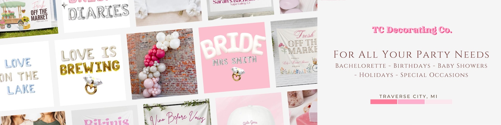 Hi! I'm Jenna, owner and founder of TC Decorating Co. We're a party planning & decorating service based out of Traverse City, MI. From bachelorettes to baby showers, we're here to make the party process fun & easy for you!