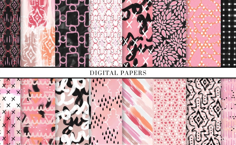 Digital Papers | hi-res patterns with hand drawn elements and coordinating color palettes. Perfect for backgrounds +