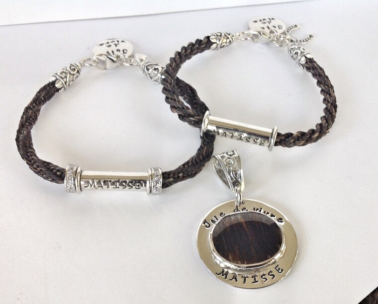 5 de 5 estrellasI ordered the bracelet as well as the horseshoe charm. Both were beautifully crafted and were completed shortly after receiving the hair. These were gifts for my daughter, and I can’t imagine a better way to honor and preserve the memory of her beloved horse. Kathy was wonderful, responsive and easy to work with. Very talented as well! Thank you!