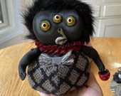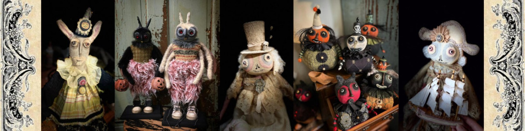 All of my designs are original and one-of-a-kind. Although I have a B.A. Degree in the Arts, I am a self-taught doll maker. I have no formal way of beginning my process. I just start playing with textured fabrics, trims and digging through my many boxes of treasures. From there I start cutting and feverishly mixing and matching. Following my bliss, I create all the little monsters and characters of my imagination. Every once and a while, I will create a sketch or paper pattern just to keep me in line. People often ask: What inspires you? The answer is simple: Everything! I am inspired by my children, all the places I've explored, and the people I have met. My passion for detail is intense. My need for laughter and humor is a must! Whether I am people-watching in the city, antiquing, or jumping around a junkyard, my creative pulse is constantly beating. If my creations make you laugh or smile, I've done my work. I hope they warm your soul and tickle your heart.