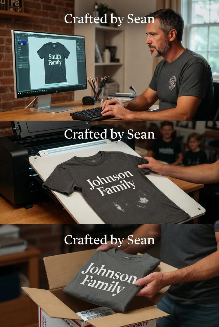 Soy Sean Festive, un padre de 48 años con dos hijos (Lily, de 12 años, y Max, de 9). Como antiguo diseñador gráfico, empecé a diseñar camisetas a juego para nuestras reuniones navideñas… y las sonrisas eran impagables.