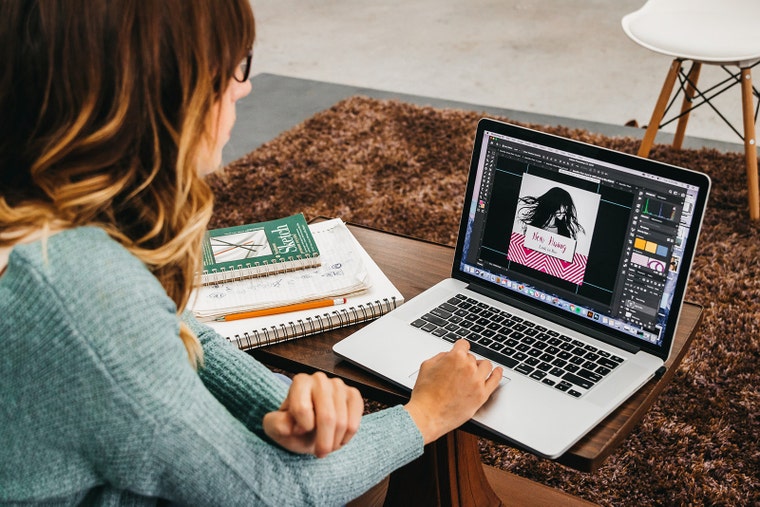 Working on templates in Photoshop. -