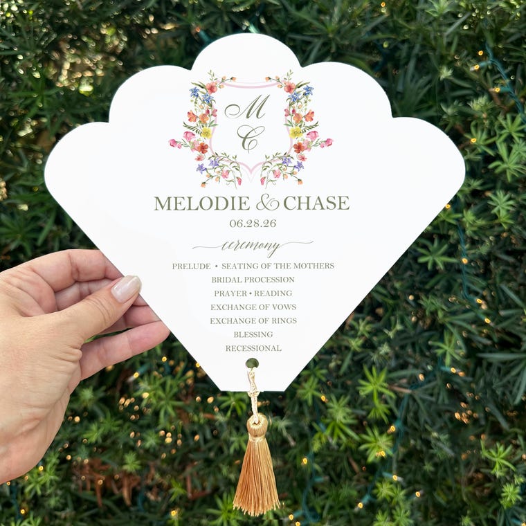 Wedding program fans in petal, scallop or paddle style! -