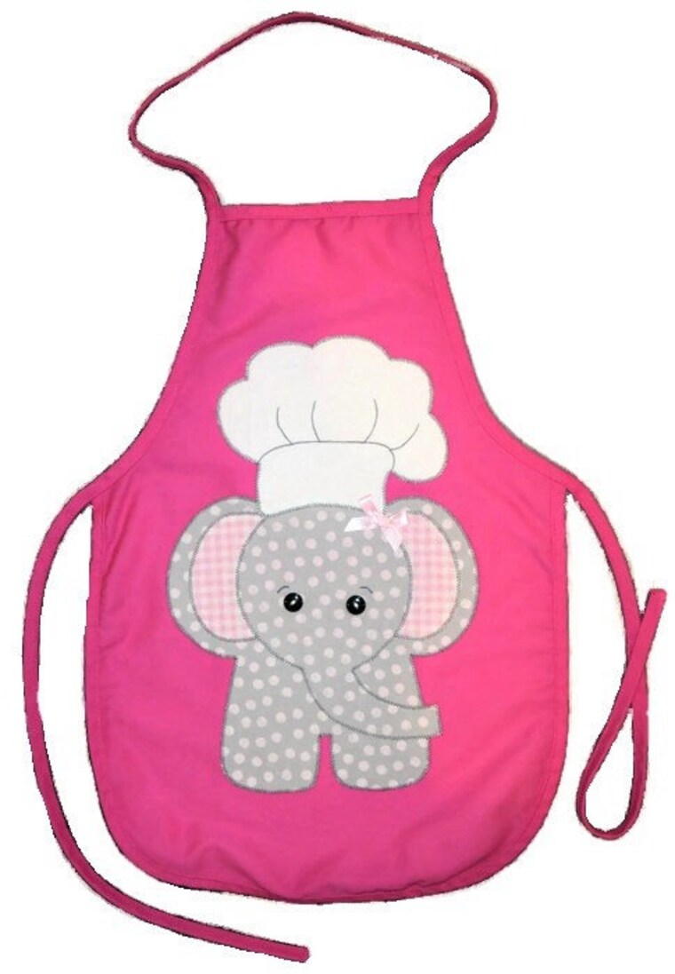 Apron with elephant in chef's hat applique. -
