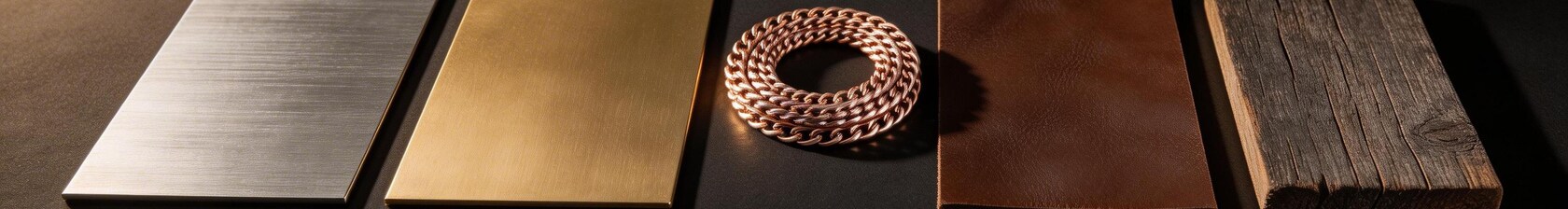 Stainless Steel, Gold Plated Stainless Steel, Rose Gold Plated Stainless Steel, and 925 Sterling Silver. Wood and Leather. All materials built to last.