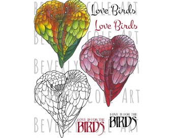 Love Birds Digital Stamp Set by Beverly Cole jpg, png, color, black & white and pinks. Sentiments in red and black. cardmaking, collage, etc