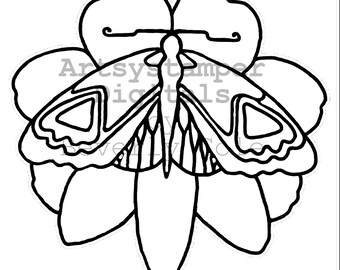 Art Deco Butterfly Blossom - Artsystamper Basics Color Yourself (color image is a sample, and not included in the set)