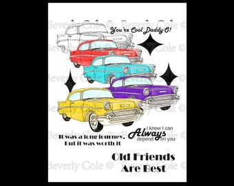 Cruisin' Digital Stamp Set instant download vintage cars, retro colors and accents, sentiments for Father's Day, masculine by Beverly Cole