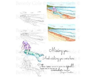 Mermaid Wishes Digital Stamp Set PNG Ocean, Beach, Fantasy, Sea for collage, vacation, girls, love, coloring, collage, cardmaking, theme