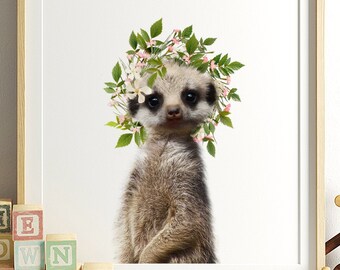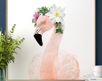 The Crown Prints - Flamingo print as digital download, Animals with Flower Crowns, Nursery artwork animal prints, Nursery decor, Wall art