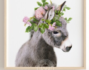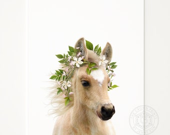 Baby horse with flower crown, PRINTABLE ART, Girls room decor, Boho nursery, Baby animal prints, Animals with flowers, Nursery wall art