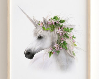 Unicorn art, PRINTABLE ART, Girls room art, Unicorn wall art, Large poster, Nursery decor, Flower crown print, Boho decor, Boho wall