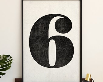 Number 6 sign, Number prints, PRINTABLE art, Black and white art, Scandinavian decor, Minimalist decor, Modern art, Large wall art, Poster