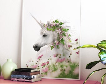 Unicorn decor, PRINTABLE ART, Girls room art, Unicorn wall art, Large poster, Nursery decor, Flower crown print, Boho decor, Boho wall