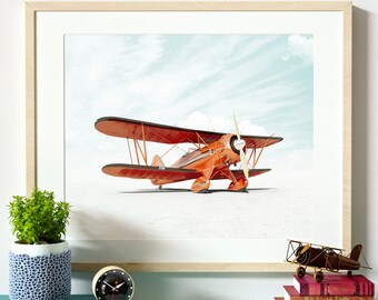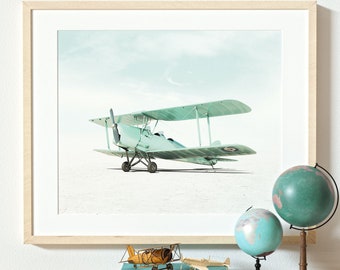 Vintage Airplane Nursery Decor, PRINTABLE ART, The Crown Prints - Boys room wall art, Aviation Decor and gift for pilot, Transportation Art