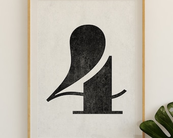Number 4 sign, Number prints, PRINTABLE art, Black and white art, Scandinavian decor, Minimalist decor, Modern art, Large wall art, Poster
