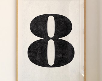 Number 8 sign, Number prints, PRINTABLE art, Black and white art, Scandinavian decor, Minimalist decor, Modern art, Large wall art, Poster
