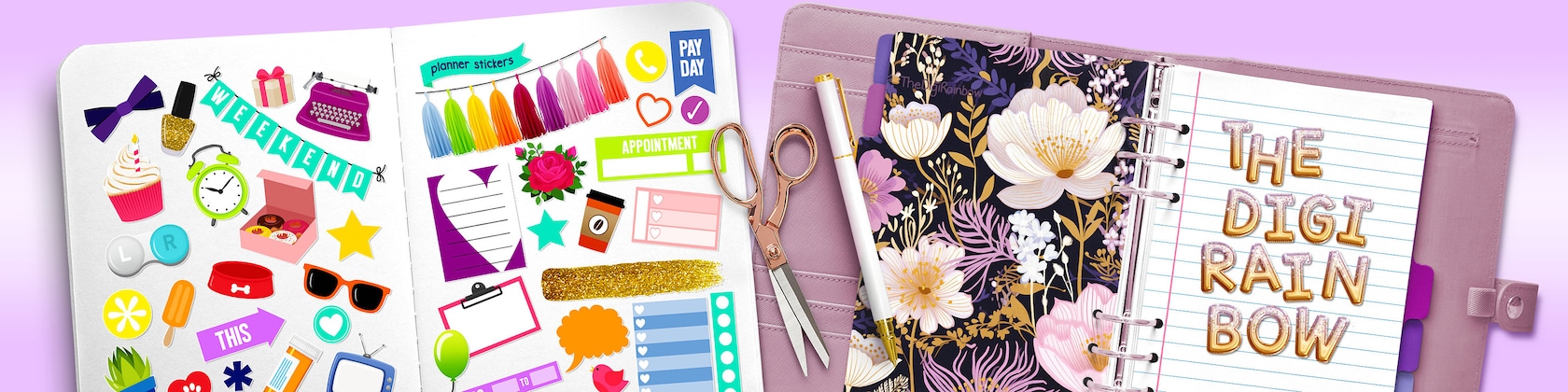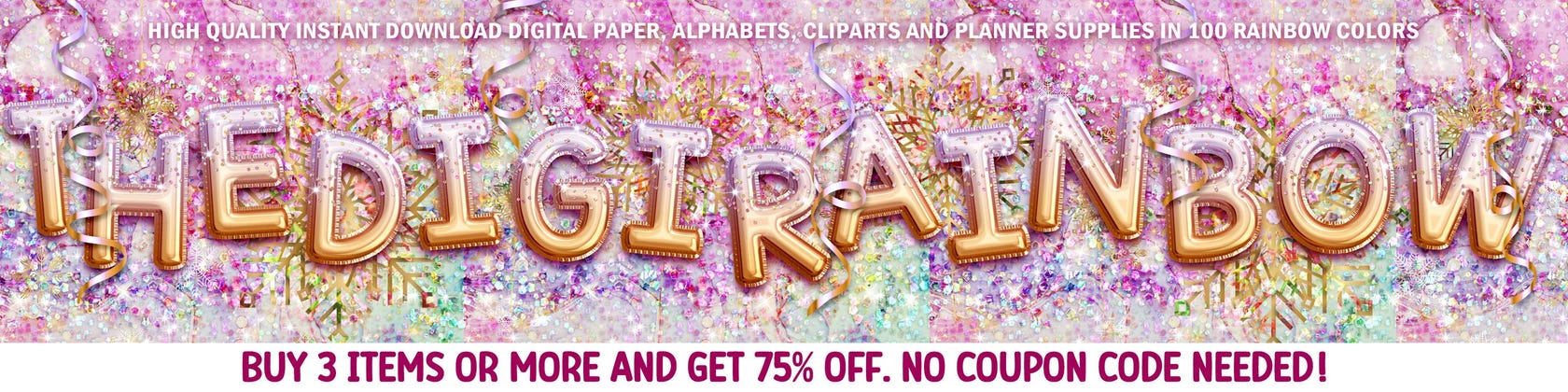 ❤ If you're crazy about bright colors, cheerful prints, planner decoration, super cute alphabets and glamorous glitter & sequin textures, you're in the right place. Welcome to TheDigiRainbow! ❤