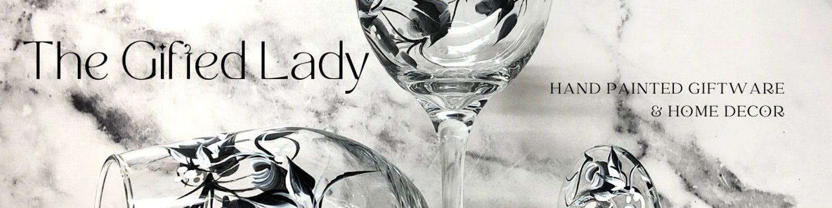 After a successful 12 year run, my retail store transitioned into The Gifted Lady, LLC - featuring the same unique hand painted wine glasses, piggy banks and home decor. Only this time, I work strictly out of my Farmington Ct. studio; listening to music and painting. All artwork is painted by me and signed "Nelle" - Ellen spelled backwards (and the nickname my husband gave me years ago!)