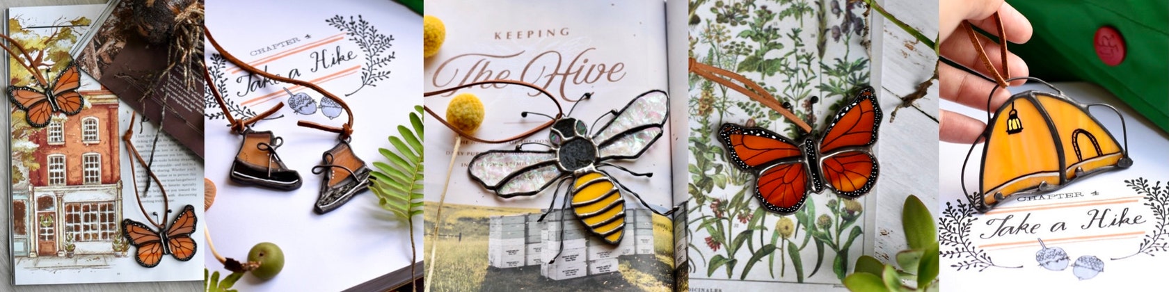 I now have a beautiful collection of stained glass and am largely inspired by nature around me. People refer to me as the “butterfly girl”! I absolutely love butterflies as is evidenced by all of the glass wings in my small Etsy shop!