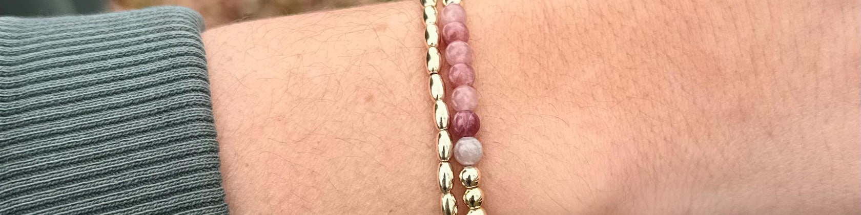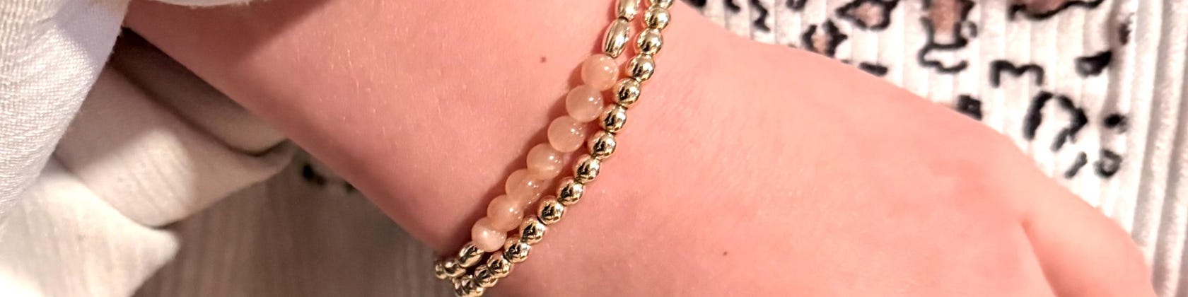 Unsere Armbänder bestehen aus 14-karätigen Goldperlen und Glasperlen. Für optimale Haltbarkeit vermeiden Sie Wasser, Parfüm, Lotionen und aggressive Chemikalien. Wischen Sie sie bei Bedarf vorsichtig mit einem weichen Tuch ab und bewahren Sie sie separat auf, um Kratzer zu vermeiden.