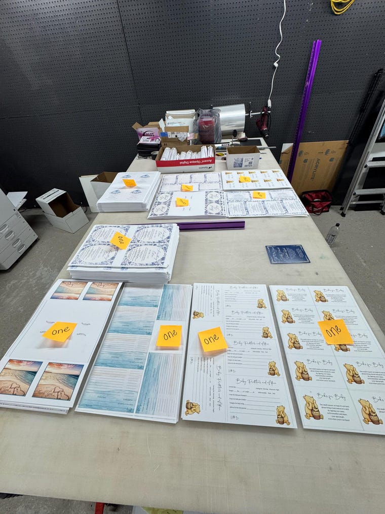 James’ workspace — printing, cutting, and packaging every invitation to perfection.