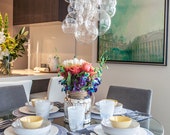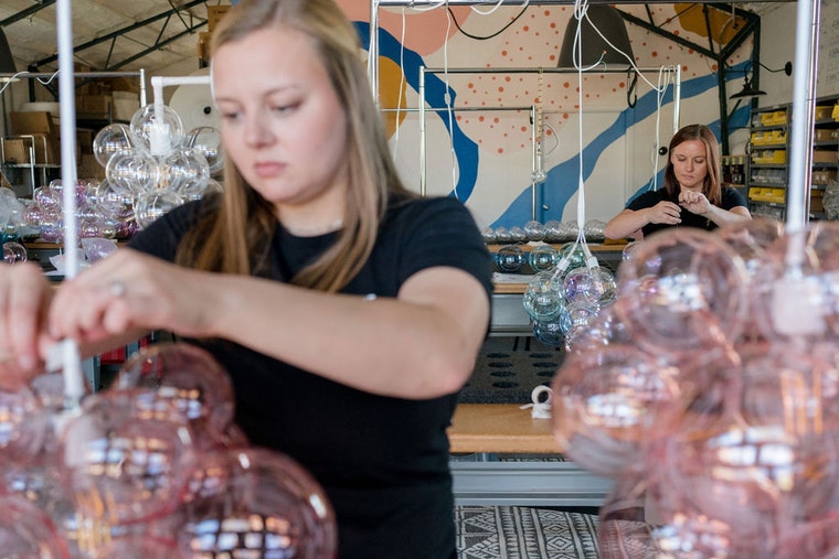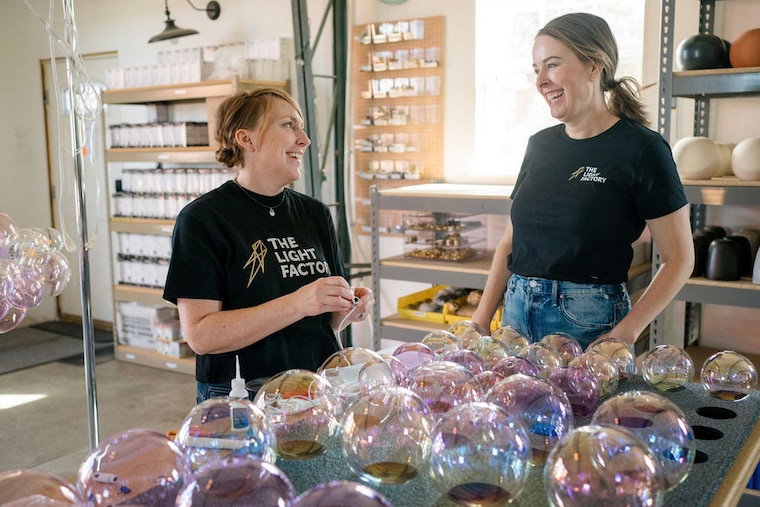 The Light Factory started with a weekend project. In 2013, our founder Ashlie had just finished the renovation on her first house. A chandelier was the last touch she needed to complete her living room, but she couldn't find one that was the perfect mix of modern and playful. So she decided to create her dream chandelier! Arranging hand-blown glass bubbles into a shape reminiscent of floating clouds, Ashlie designed the first Glass Bubble Chandelier. She loved it...and so did everyone who saw it. Within a year, she had received so much interest and so many requests, that she decided to move forward with production. The first year, she worked 80 hour weeks learning, designing, and building, while always keeping her focus on quality and customer service.