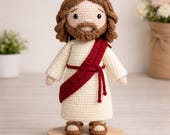 手作りかぎ針編みのイエス人形、キリスト教の宗教的な贈り物、編みぐるみのイエス人形、信仰の装飾、キリスト教徒へのスピリチュアルな贈り物