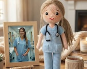 似顔絵人形、パーソナライズされた看護師・医師人形、写真からカスタムかぎ針編み人形、医療従事者へのギフト、医師・看護師への感謝のギフト