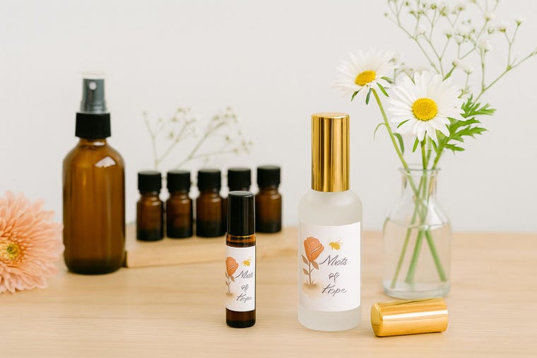 We believe fragrance can be more than a scent — it can be a reminder of hope, a moment of stillness, or a breath of encouragement in the middle of a busy day. Our products are handcrafted in small batches using clean ingredients and soft, uplifting blends designed to feel natural, comforting, and wearable.