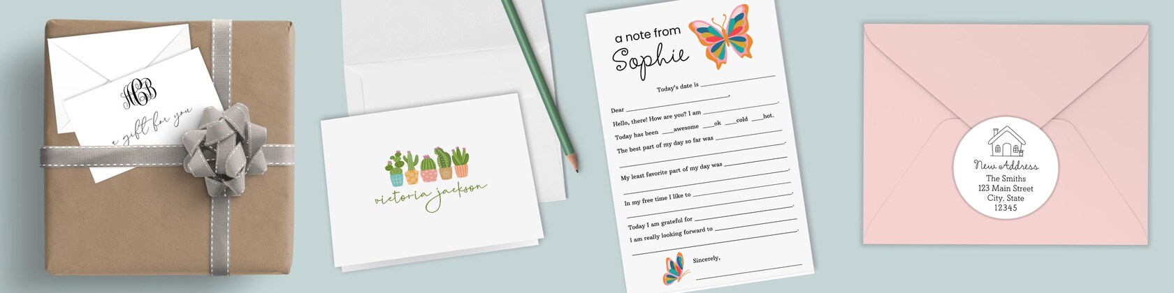 Hello! Thank you for stopping by. The Note House specializes in simple yet stylish personalized paper goods for children, women, and men. I offer personal stationery, lined stationery for kids, camp stationery, fill in the blank stationery, custom invitations, gift enclosure cards with mini-envelopes, gift tag stickers, and round and square address labels,