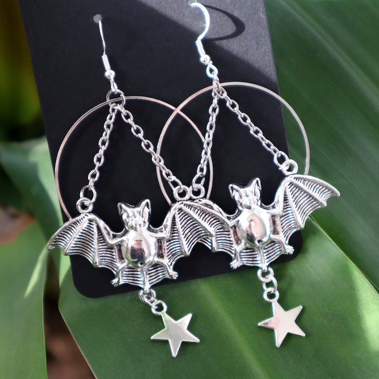 "Chiroptera" bat earrings are sensitive skin friendly with nickel-free, sterling silver hooks.