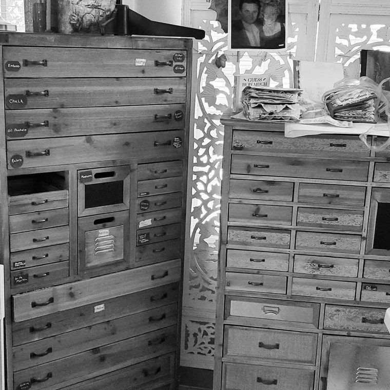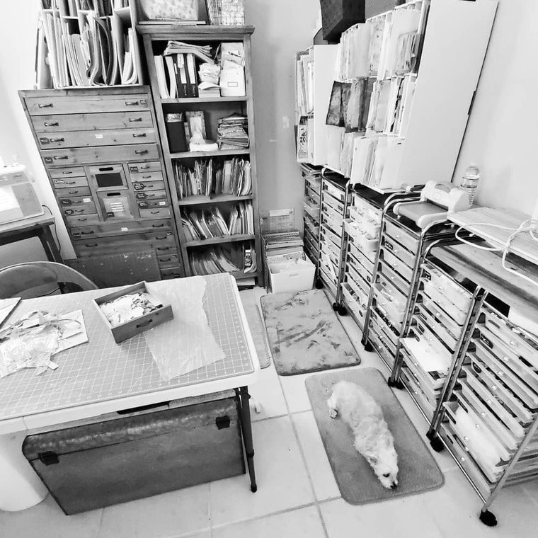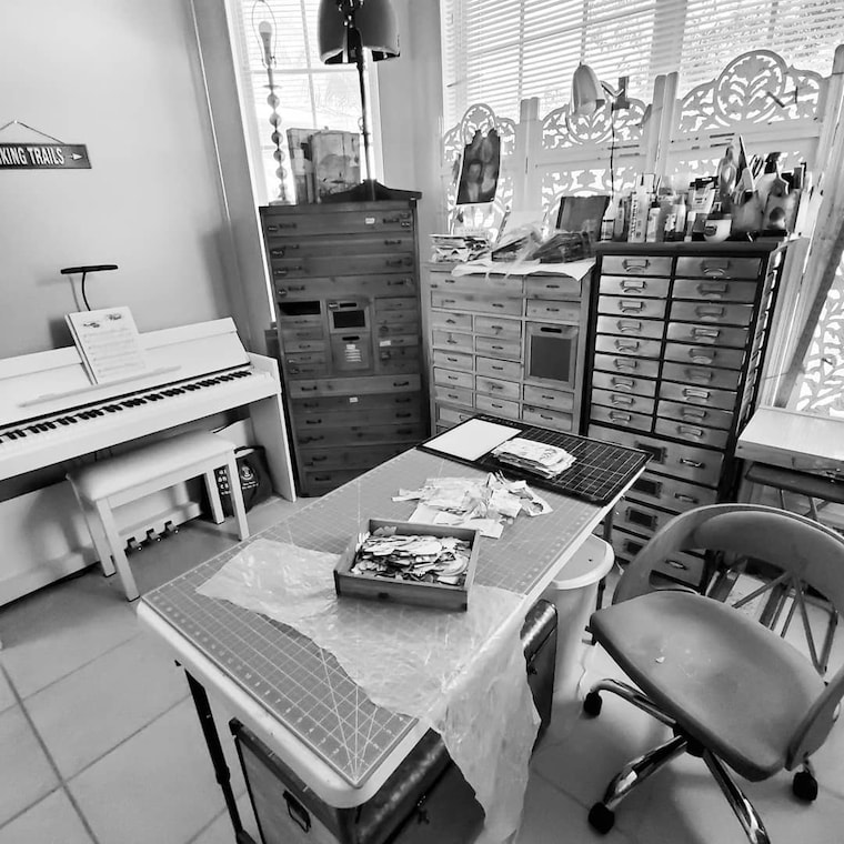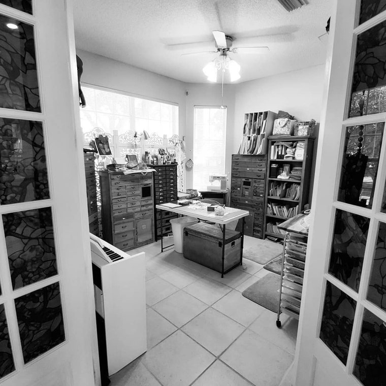 My workshop is my happy place :0) My husband calls me "Gepetta". My dining room turned art studio :) -