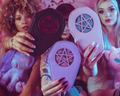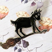 Witchy pins and apparel inspired by witchcraft, folklore, and the occult