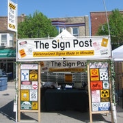 Cada sinal é feito sob medida de alumínio sólido, com letras de vinil duráveis.