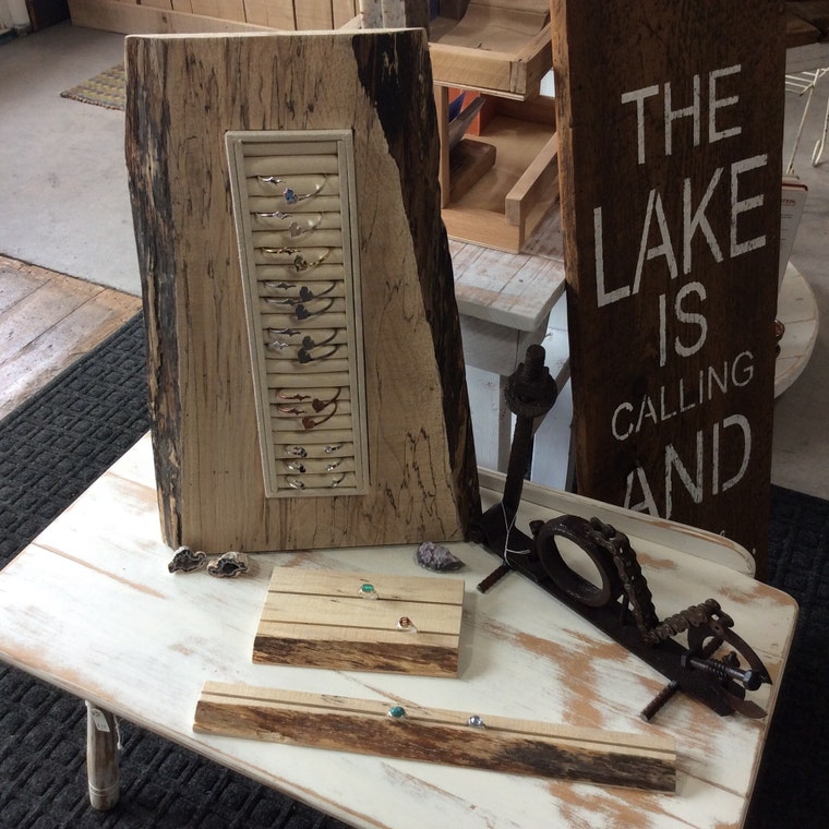 Jewelry displays...Having fun with some unique reclaimed wood! Wouldn't want to waste a piece... -