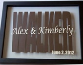 A couple of years ago, when my son was a baby, I decided to try to make some decor for our house and for his room. I had seen some cool stuff that people had done with vinyl so I decided to give it a try. All it took was one project and I was hooked! It takes a lot of restraint to keep from putting vinyl stuff up all over the house! There's a fine line between just enough and way too much. Once my house was all decor'ed up, I needed to find another outlet to satisfy the monster I created! With several friends getting married, I figured there had to be some way I could make gifts for them and decided to make some personalized frames.