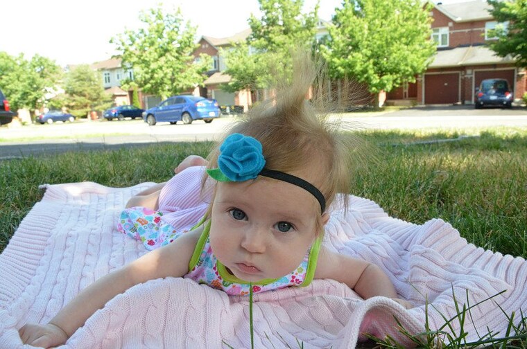 My daughter, Kallie, Sporting the very first headband I made. -