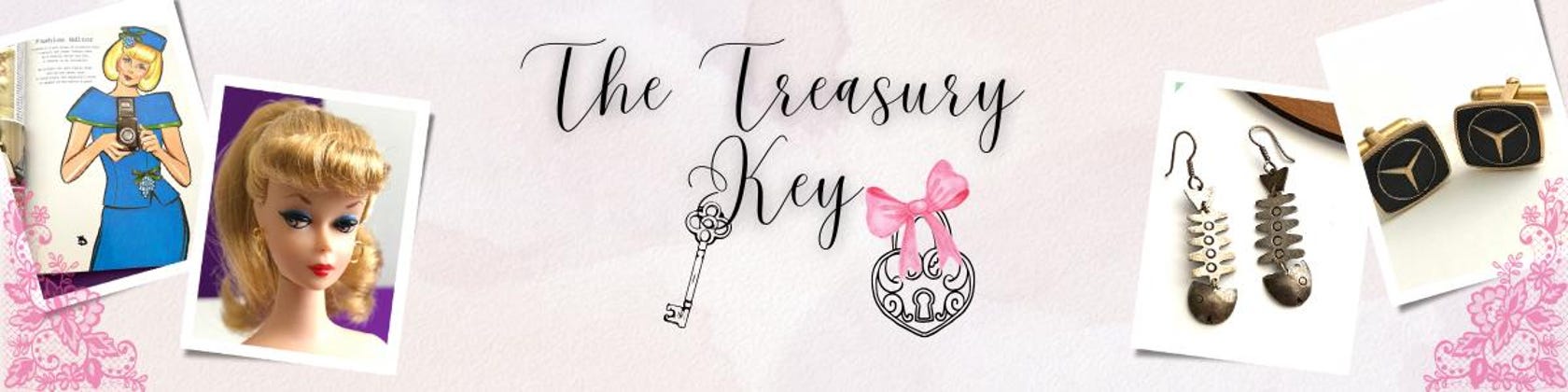 The Treasury Key is a curated vintage shop specializing in vintage jewelry costume jewelry, Barbie dolls, and nostalgic collectibles. Every item is thoughtfully sourced and chosen for its timeless appeal, individuality, and history.