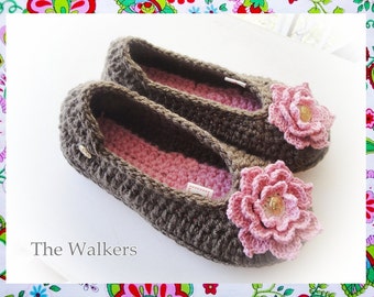 The Walkers (with soles) Home Shoes/Woman Shoes/Crochet Slippers with Flowers