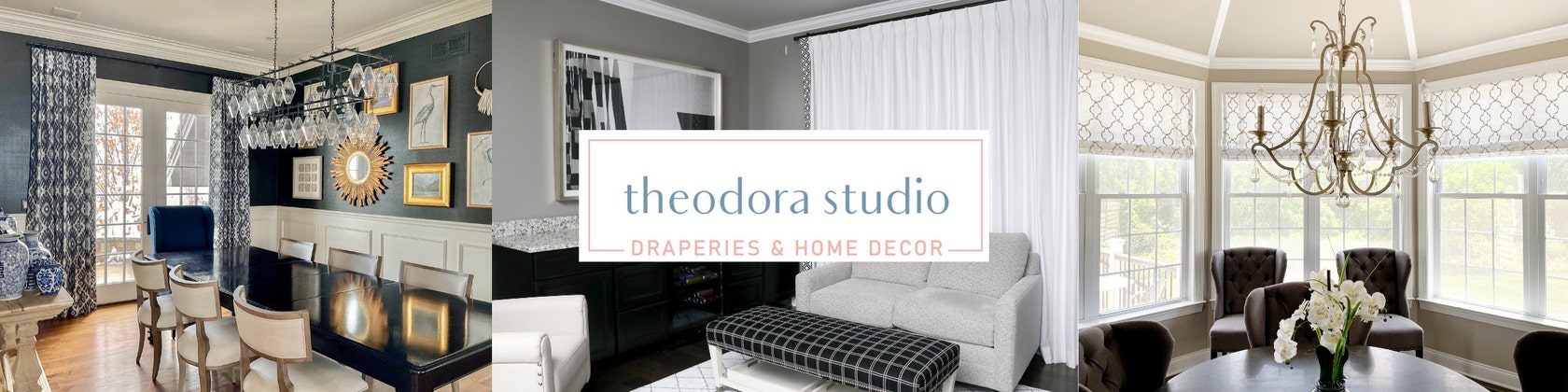 At Theodora Home Studio, we emphasize a collaborative approach to our design process, hand-making Custom draperies, Valances, Roman shades, Sheer curtains, Duvet