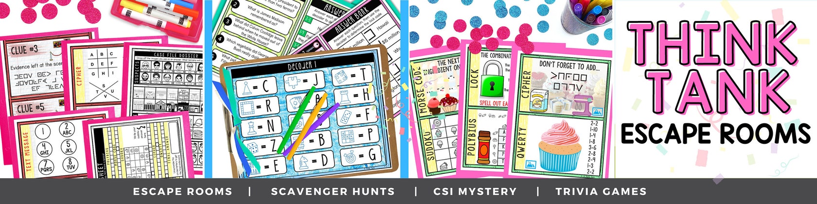 You can also visit our sister shop for educational escape rooms for the classroom: https://www.etsy.com/shop/ThinkTankTOO