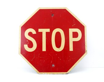 Vintage Metal "STOP" Sign, 24" x 24" (c.1960s) - Industrial Home Decor, Collectible Signage, Man Cave, Red & White Sign
