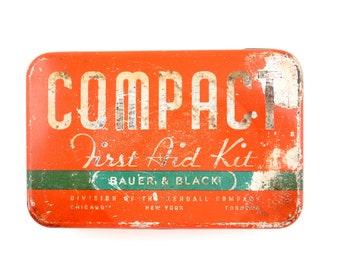 Vintage Compact First Aid Kit in Original Tin (c.1950s) - Collectible First Aid Pocket Tin, Cabin Decor, Man Cave