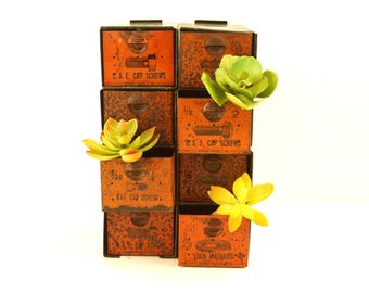 Vintage Dorman Parts Drawer Hardware Bin with 8 Drawers in Rustic Orange (c.1950s) - Industrial Storage, Urban Loft Decor