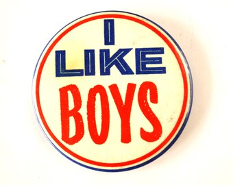 Vintage "I Like Boys" Pin, 3.5" diameter (c.1970s) N3 - Collectible Pin, Curio Cabinet Display, Gift Wrap Embellishment
